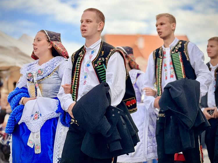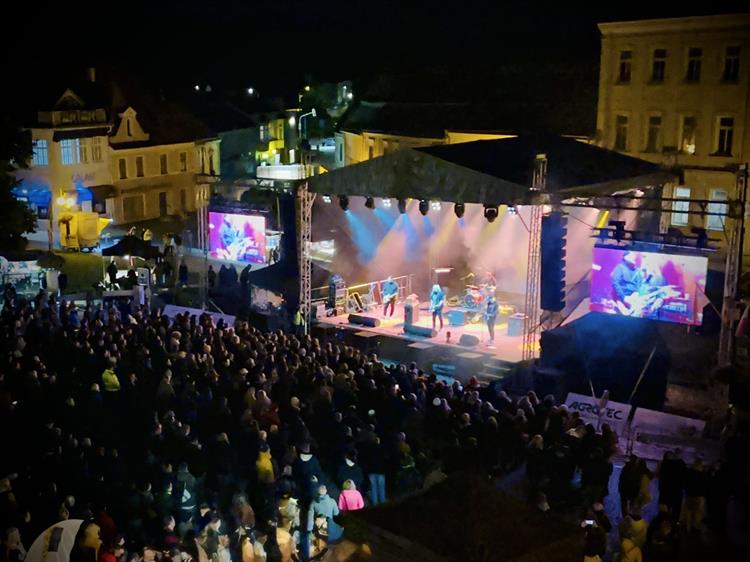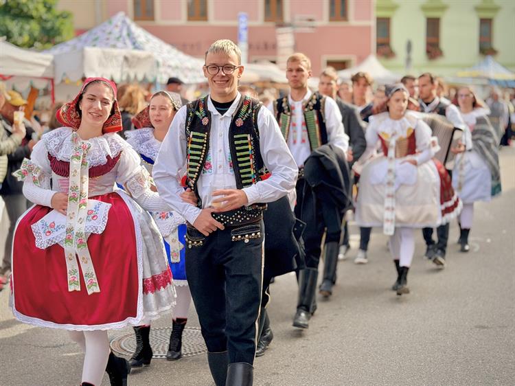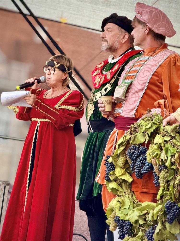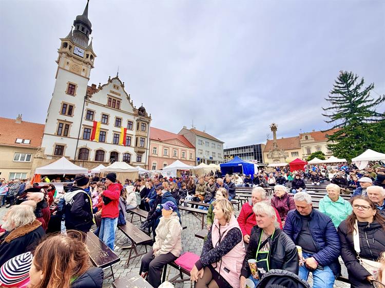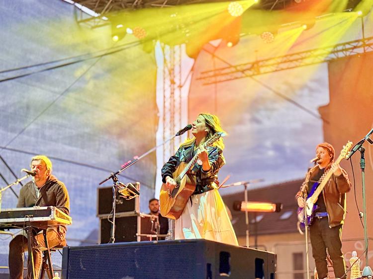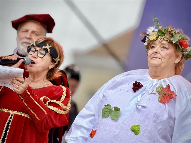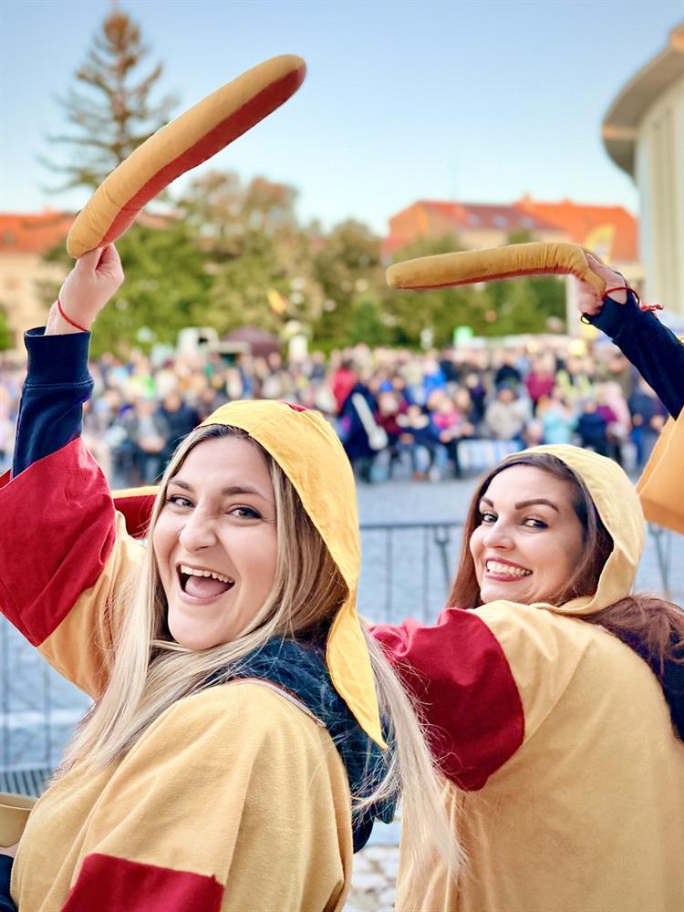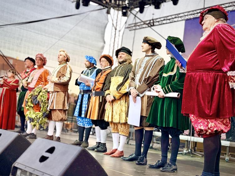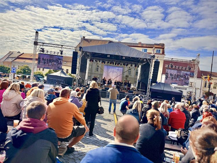 Sobotní den přinesl všechno, co dělá slavnosti slavnostmi – jarmark, burčák, folklor, recesi i koncerty. Na pódiu zářil Voxel, který během koncertu seskočil z pódia a zpíval přímo mezi diváky. "Najednou stál mezi lavičkami, lidé se smáli a zpívali s ním, bylo to uvolněné a krásné," uznává Hrádková. Stejně krásné pocity přinesl i koncert Anety Langerové a především samotný závěr jejího vystoupení, kdy celé náměstí jako jeden sbor zpíval její Vodu živou. "To byl silný moment. Člověk stojí na kraji náměstí, slyší, jak zpívá celé město, a říká si – tak přesně kvůli tomu to děláme," popisuje Hrádková dojatě. Závěr večera patřil Davidu Kollerovi, který se na pódium postavil v dešti, ale diváci zůstali. "Bylo to krásné. Pršelo, ale nikdo neodcházel. Lidé tancovali s kapucemi na hlavě a smáli se. Tohle se prostě musí zažít."
