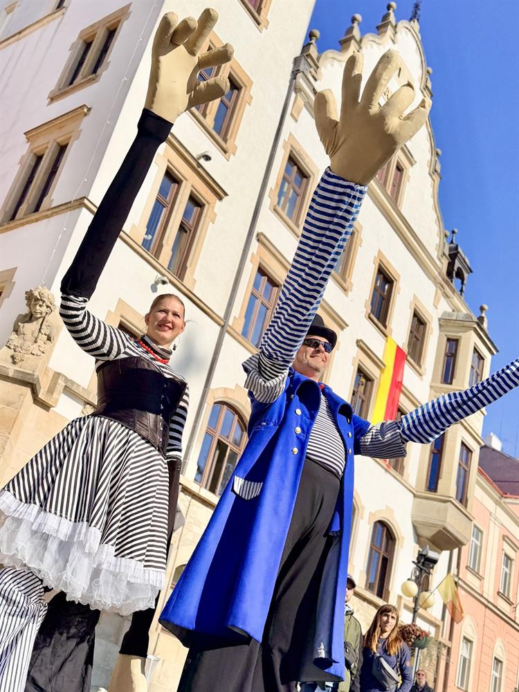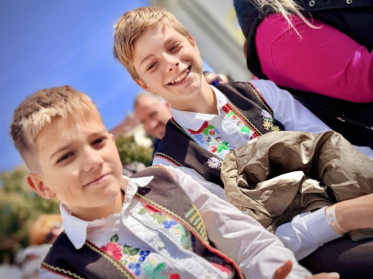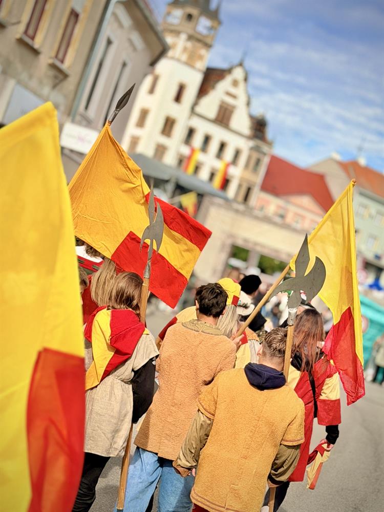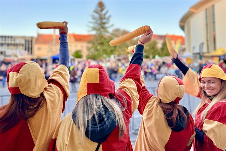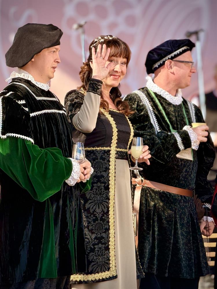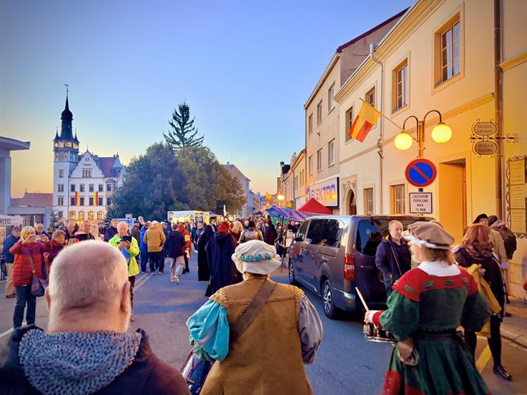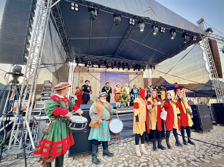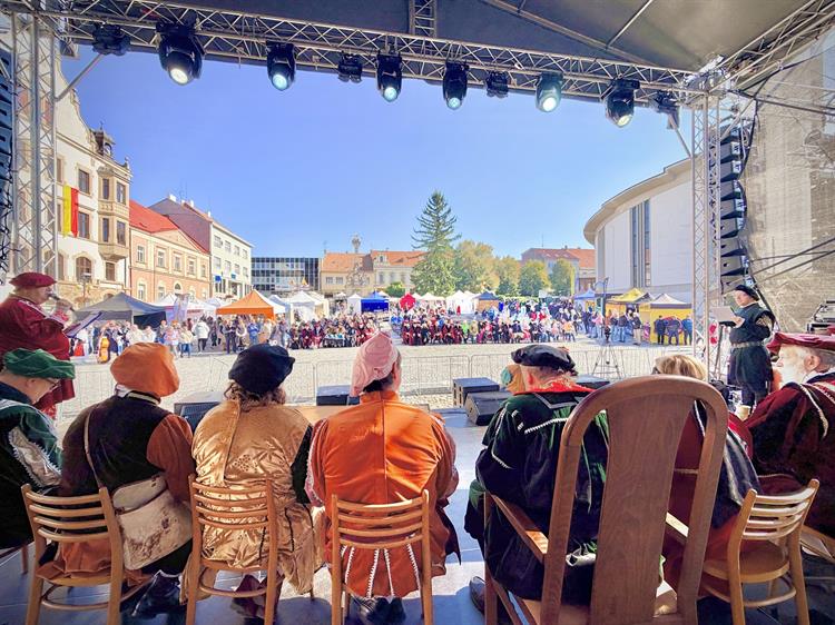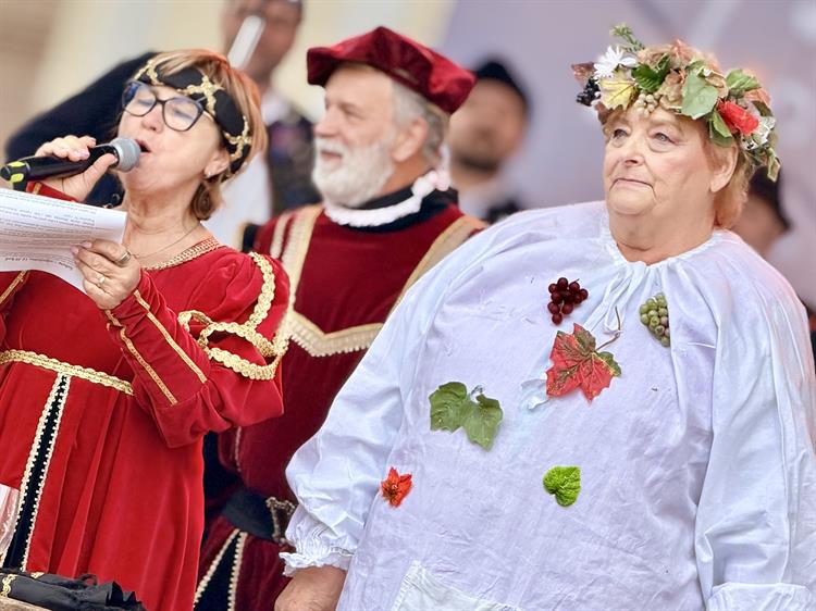 Sobotní den přinesl všechno, co dělá slavnosti slavnostmi – jarmark, burčák, folklor, recesi i koncerty. Na pódiu zářil Voxel, který během koncertu seskočil z pódia a zpíval přímo mezi diváky. "Najednou stál mezi lavičkami, lidé se smáli a zpívali s ním, bylo to uvolněné a krásné," uznává Hrádková. Stejně krásné pocity přinesl i koncert Anety Langerové a především samotný závěr jejího vystoupení, kdy celé náměstí jako jeden sbor zpíval její Vodu živou. "To byl silný moment. Člověk stojí na kraji náměstí, slyší, jak zpívá celé město, a říká si – tak přesně kvůli tomu to děláme," popisuje Hrádková dojatě. Závěr večera patřil Davidu Kollerovi, který se na pódium postavil v dešti, ale diváci zůstali. "Bylo to krásné. Pršelo, ale nikdo neodcházel. Lidé tancovali s kapucemi na hlavě a smáli se. Tohle se prostě musí zažít."