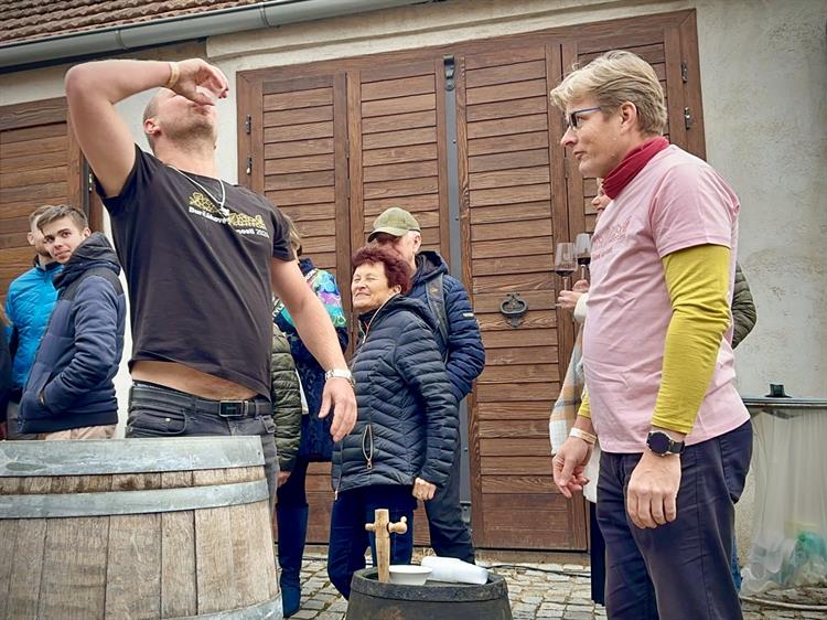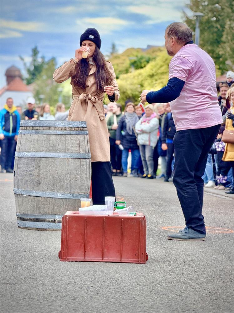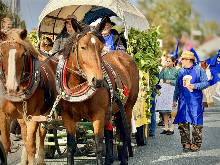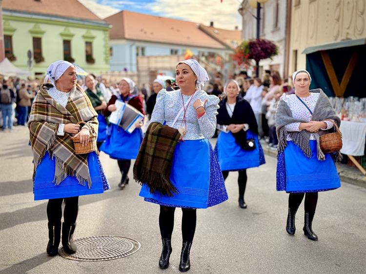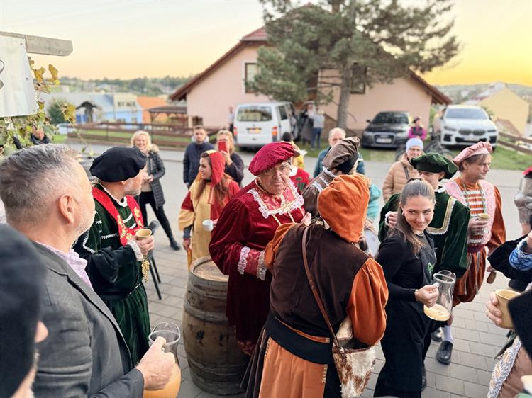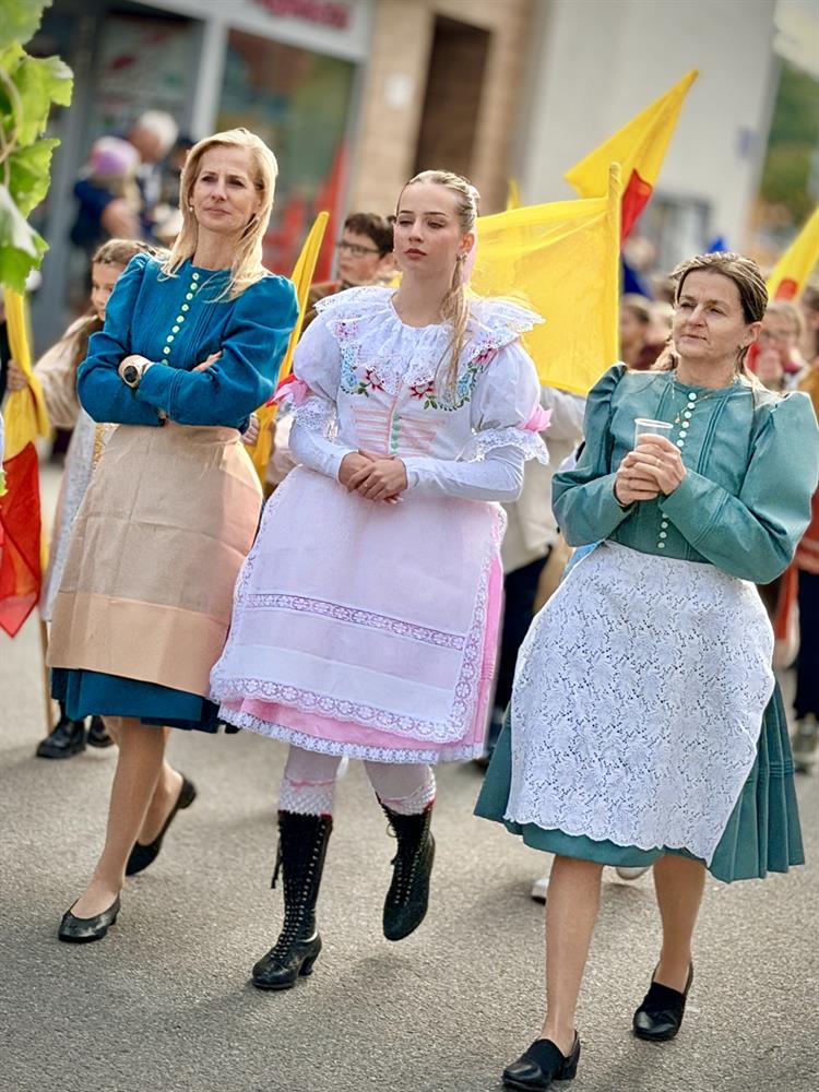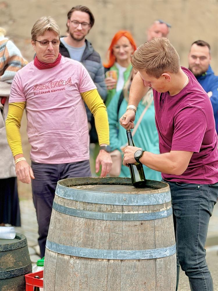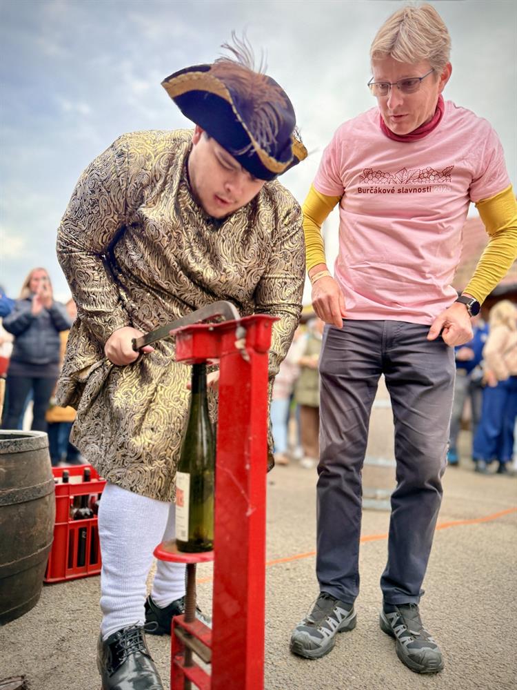 Slavnosti odstartovaly už ve čtvrtek vystoupeními místních škol a spolků, ale naplno se rozjely v pátek večer, kdy se otevřely vinařské mázhausy a náměstí zaplnily stovky lidí s pohárky burčáku v rukou. Po ohňové show se na pódiu objevil Michal Horák, který svým humorem rozehřál publikum, a večer vyvrcholil koncertem legendární kapely Vypsaná fiXa. "Byl to neskutečný moment – celé náměstí zpívalo, a když si během jedné písně všichni sedli na zem, člověk měl husí kůži," popisuje Hrádková a jako jedna z mála věděla i o plánovaném překvapení, kdy se na závěr koncertu připojil ke kapele i nejposlouchanější český interpret na Spotify, Redzed, rodák z nedalekých Starovic. "Nikdo to nečekal, byla to taková třešnička na pátečním večeru," dodává s úsměvem Hrádková.