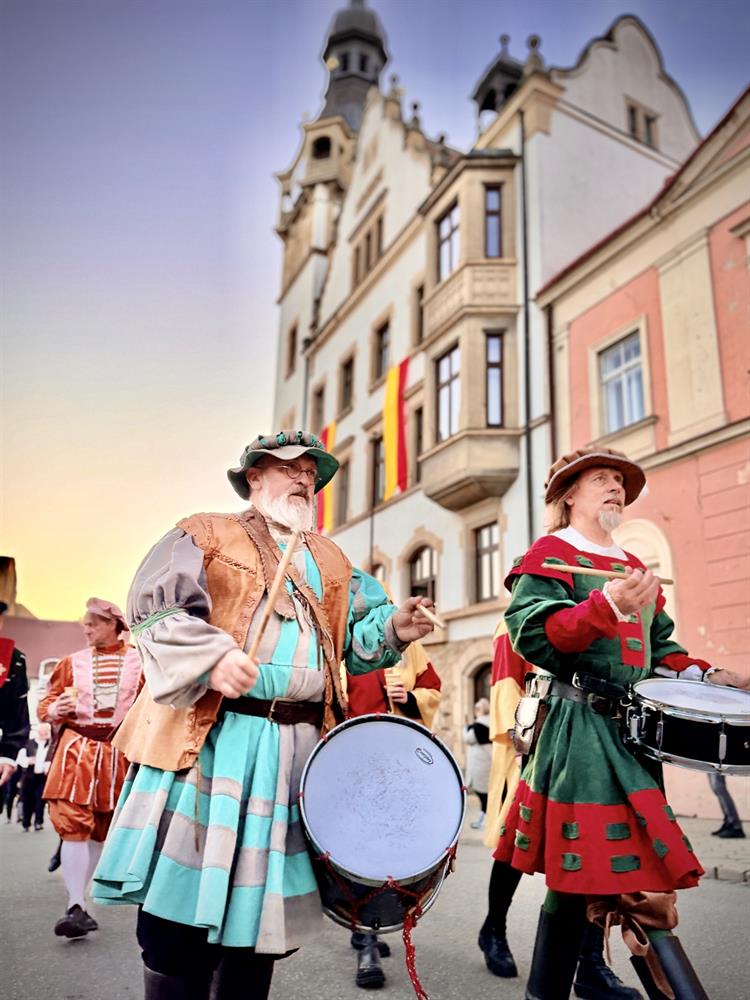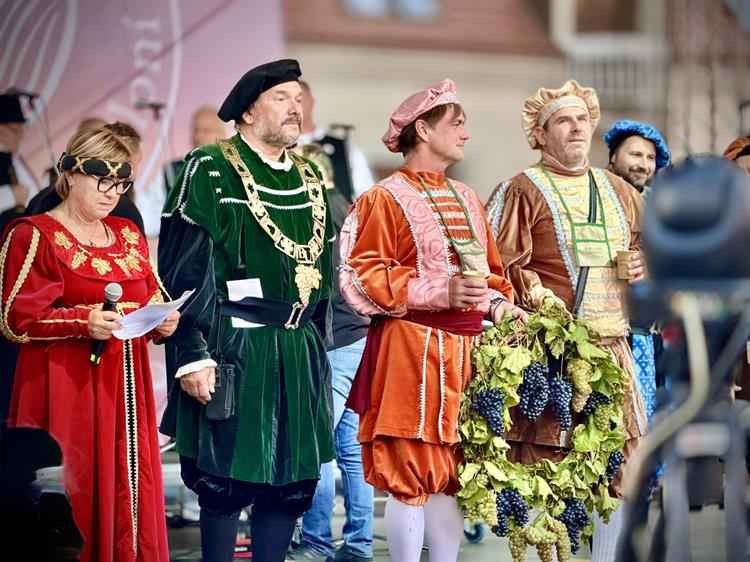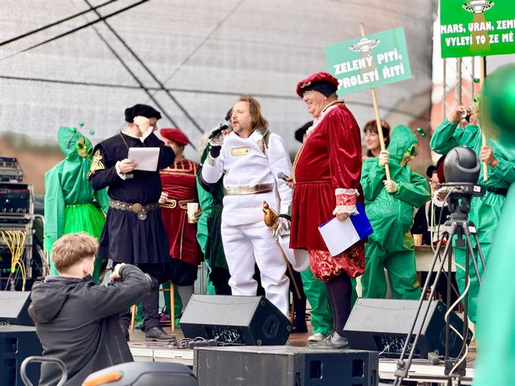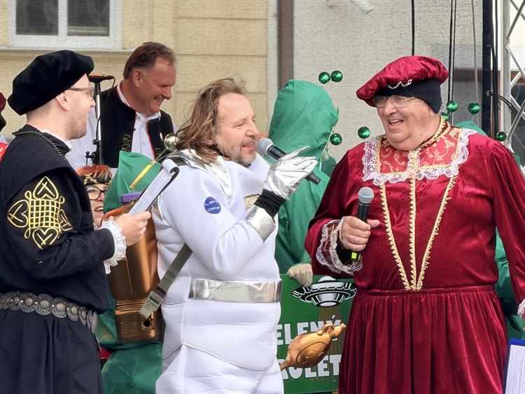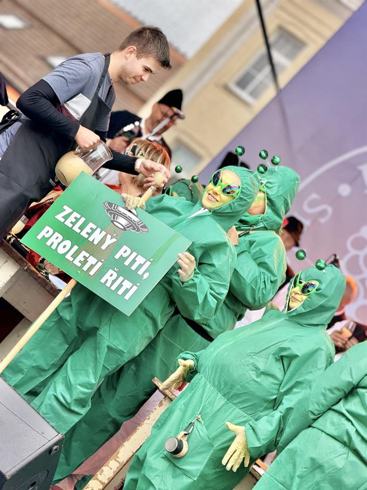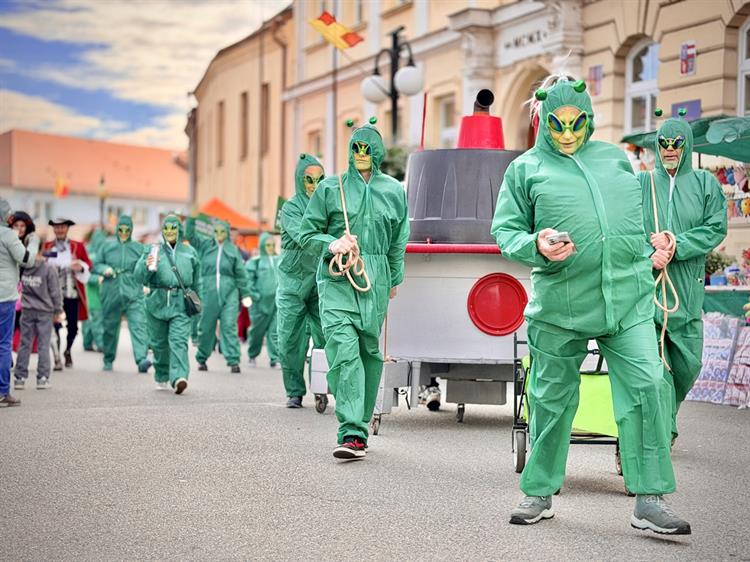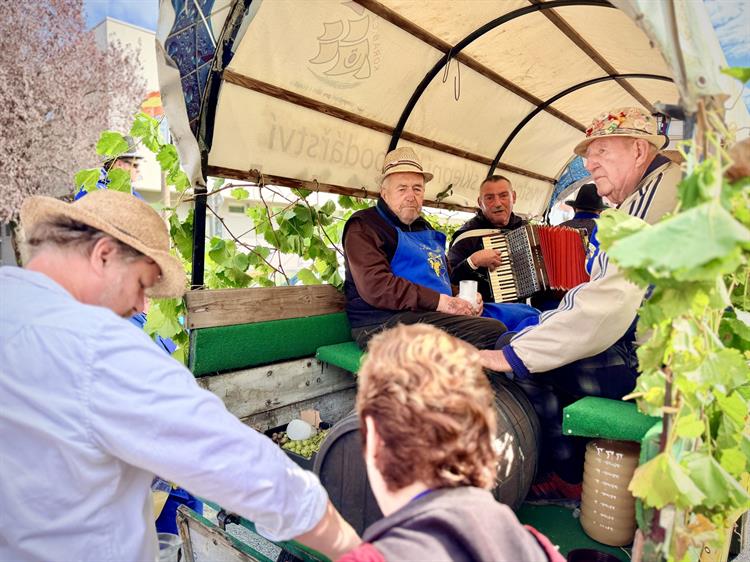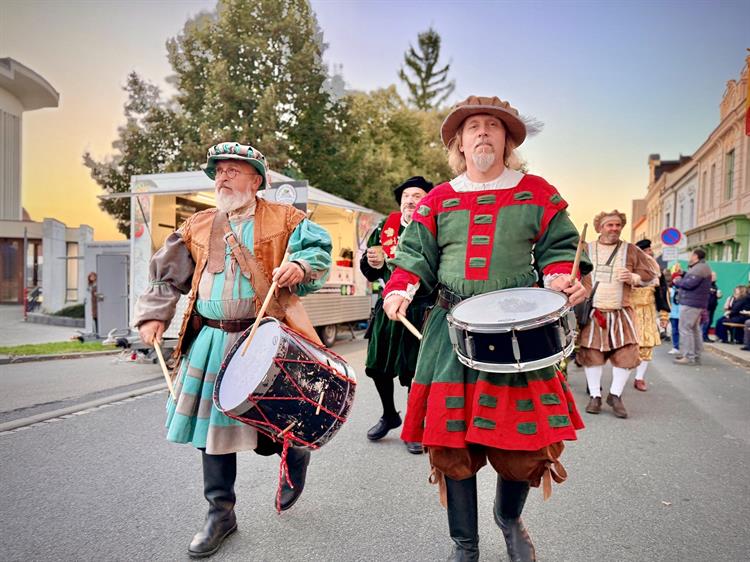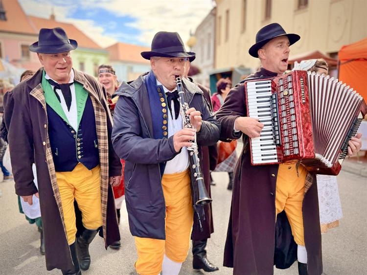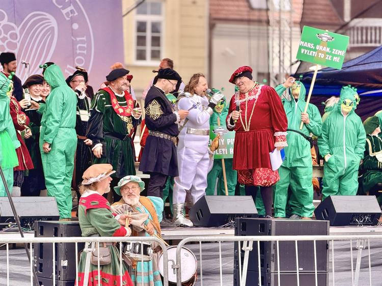 Folklorní zóna na nádvoří renesančního domu U Synků nabídla klidnější tvář slavností. Mužácké sbory, cimbálovou muziku, krojované soubory i Hustopečskou chasu, která se postarala o pravou atmosféru jižní Moravy. Návštěvníci zde mohli ochutnávat vína od místních vinařů a nechat se unášet melodiemi, které se nesly až na náměstí.Kdo měl chuť na trochu rytmu, nemohl minout bubenickou skupinu Šamana Maya, která procházela městem a strhávala kolemjdoucí k tanci i pochodu. "Byla to čirá energie. Když jste slyšeli bubny, prostě jste se museli přidat," směje se Hrádková.A protože slavnosti by nebyly slavnostmi bez pořádné recese, nechyběl ani historický průvod. Kromě tradičních postav horenské rady, perkmistra, cechů a muzikantů se v něm letos objevili i mimozemšťané. "Spolek Všehoschopných letos přivezl zelené mužíčky. A publikum se bavilo od začátku do konce," dodává Hrádková s pobavením.