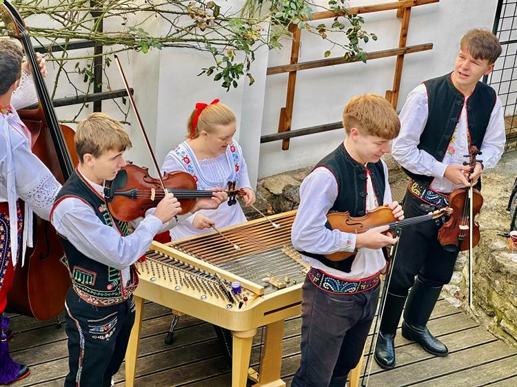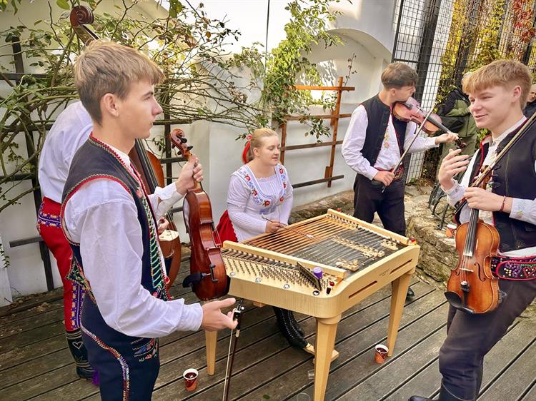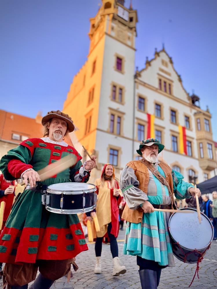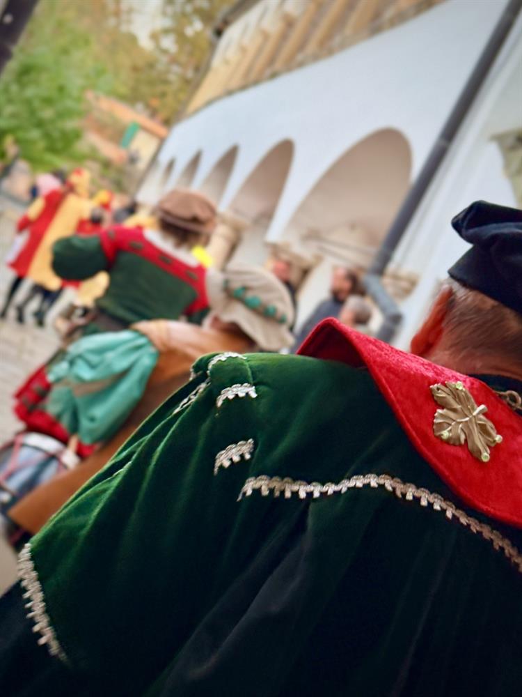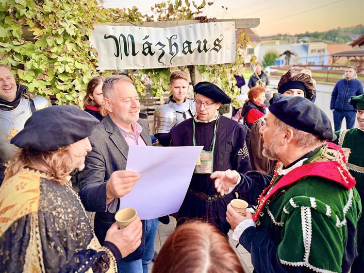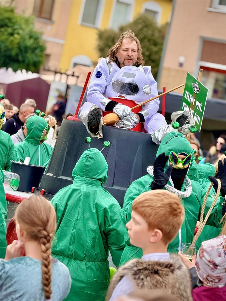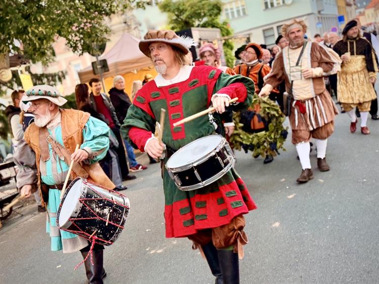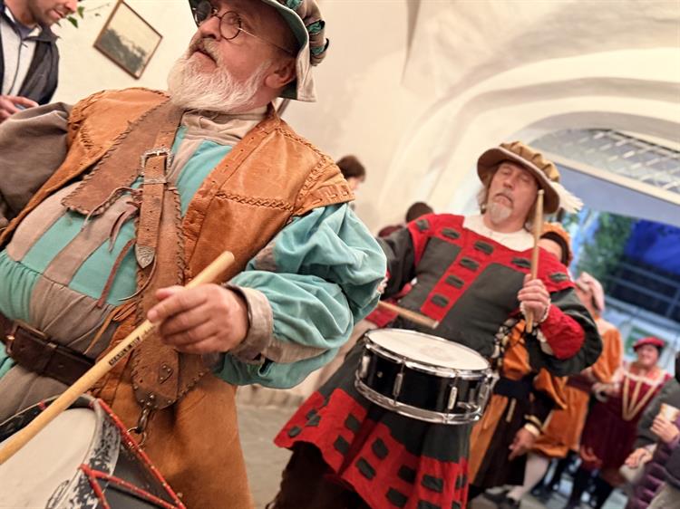 Folklorní zóna na nádvoří renesančního domu U Synků nabídla klidnější tvář slavností. Mužácké sbory, cimbálovou muziku, krojované soubory i Hustopečskou chasu, která se postarala o pravou atmosféru jižní Moravy. Návštěvníci zde mohli ochutnávat vína od místních vinařů a nechat se unášet melodiemi, které se nesly až na náměstí.Kdo měl chuť na trochu rytmu, nemohl minout bubenickou skupinu Šamana Maya, která procházela městem a strhávala kolemjdoucí k tanci i pochodu. "Byla to čirá energie. Když jste slyšeli bubny, prostě jste se museli přidat," směje se Hrádková.A protože slavnosti by nebyly slavnostmi bez pořádné recese, nechyběl ani historický průvod. Kromě tradičních postav horenské rady, perkmistra, cechů a muzikantů se v něm letos objevili i mimozemšťané. "Spolek Všehoschopných letos přivezl zelené mužíčky. A publikum se bavilo od začátku do konce," dodává Hrádková s pobavením.