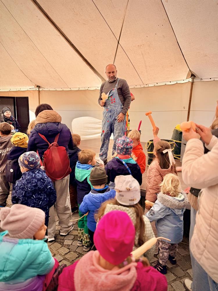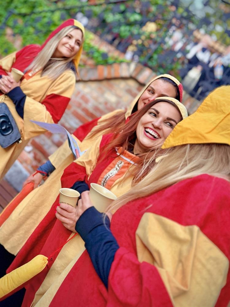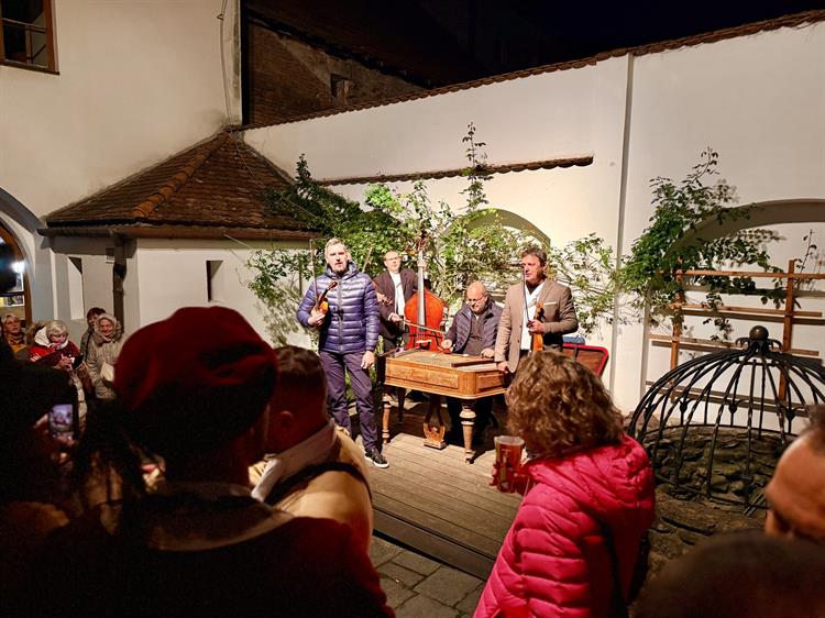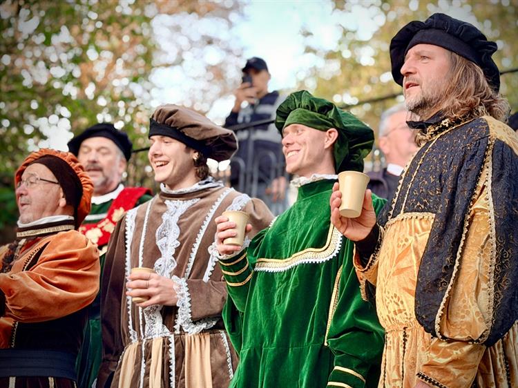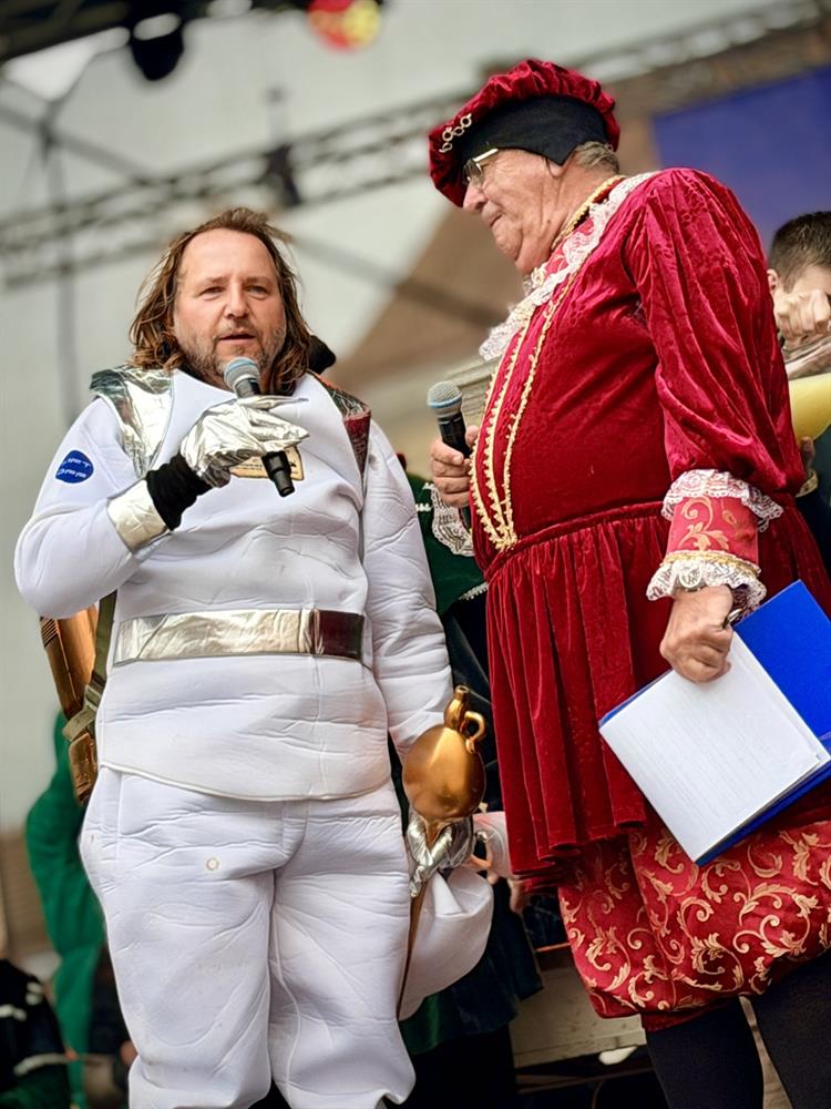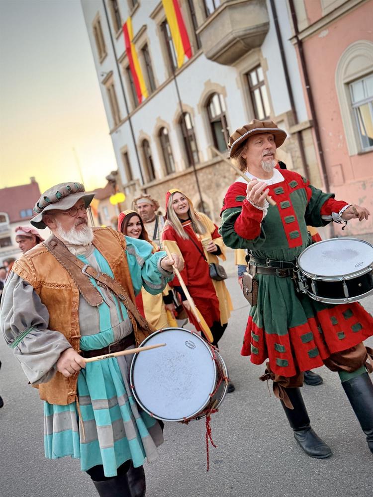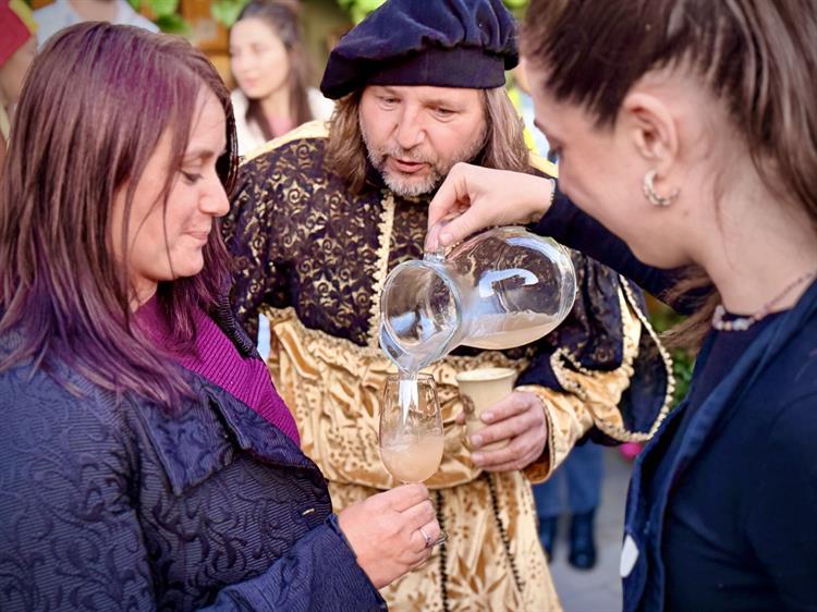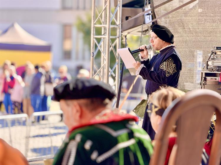 Folklorní zóna na nádvoří renesančního domu U Synků nabídla klidnější tvář slavností. Mužácké sbory, cimbálovou muziku, krojované soubory i Hustopečskou chasu, která se postarala o pravou atmosféru jižní Moravy. Návštěvníci zde mohli ochutnávat vína od místních vinařů a nechat se unášet melodiemi, které se nesly až na náměstí.Kdo měl chuť na trochu rytmu, nemohl minout bubenickou skupinu Šamana Maya, která procházela městem a strhávala kolemjdoucí k tanci i pochodu. "Byla to čirá energie. Když jste slyšeli bubny, prostě jste se museli přidat," směje se Hrádková.A protože slavnosti by nebyly slavnostmi bez pořádné recese, nechyběl ani historický průvod. Kromě tradičních postav horenské rady, perkmistra, cechů a muzikantů se v něm letos objevili i mimozemšťané. "Spolek Všehoschopných letos přivezl zelené mužíčky. A publikum se bavilo od začátku do konce," dodává Hrádková s pobavením.