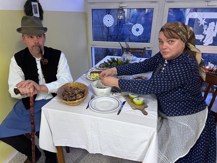Děti nejprve potěšily své rodiče i prarodiče krátkým vystoupením s vánočními písněmi a poté se všichni společně pustili do tvoření. „Připravili jsme si pro děti a jejich rodiny malý folklorní večer. Děti si připravily pásmo tradičních koled a umělých písní a po ukončení oficiálního programu besídky se rozcházíme do jednotlivých dílniček a snažíme se oživovat zapomenuté tradice českého lidu. Můžou si vyrobit figurky z vizovického pečiva, potom si můžou zhotovit takové čertíky z březového proutí anebo si umotat svíčku z včelího vosku. A zároveň je tady taková tajná akce, taková šifra, kde vlastně se dětem předávat nějaké zapomenuté zvyky,“ popisuje rodinné odpoledne Veronika Nováková, která měla odpoledne na starosti.