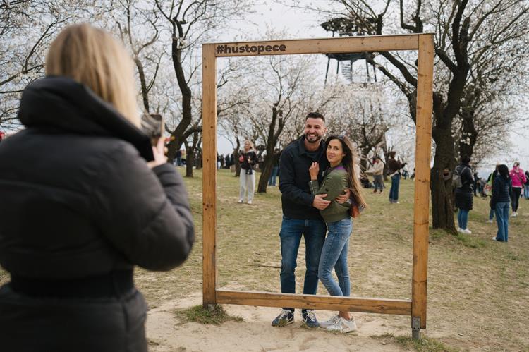 Mandloňové sady rozkvetly do plné krásy a vytvořily sněhobílou scenérii, která přitahovala návštěvníky po celý víkend. Cesty mezi stromy byly plné rodin, dvojic i skupin přátel, kteří se zastavovali, fotografovali, smáli se a jen tak posedávali v trávě nebo na dekách. Sklenka vína v ruce, výhled na město pod sebou a kolem tisíce květů, okamžiky, které se nedají uspěchat. Jen málokdo odcházel bez fotografie a selfie pod rozkvetlými mandloněmi patřilo k nejčastějším suvenýrům.