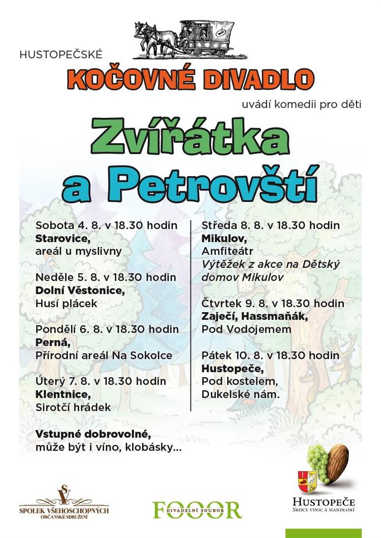 Jestli na Hustopečsku v následujícím týdnu potkáte dopravu zdržující koňský povoz plný pobudů, zamávejte jim a usmějte se na ně - Hustopečské kočovné divadlo objíždí okolní obce s veselou pohádkou pro malé i velké.