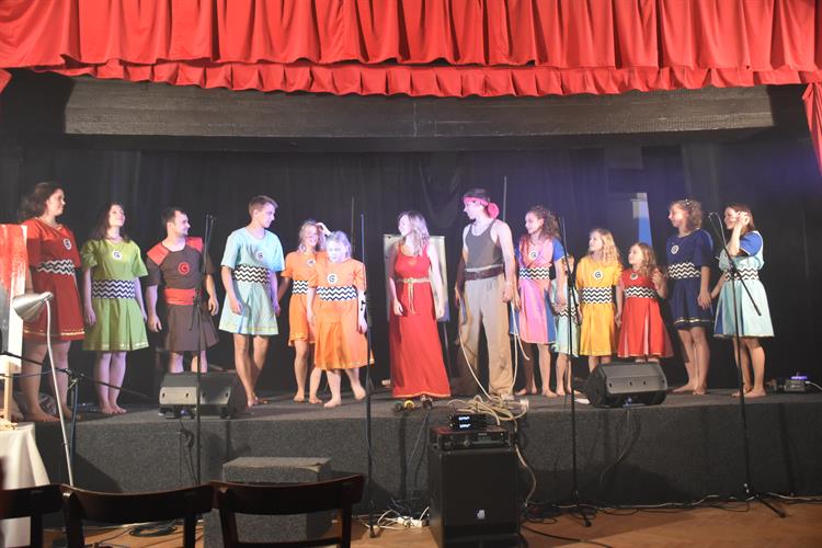 Představení odehrálo uskupení Spojené farnosti, které funguje již více než dvacet let a sdružuje mladé herce z okolí Brna. Výborné byly zejména pěvecké výkony účinkujících. A kde se bere tolik hudebně nadaných lidí v jednou souboru? „Každý umí zpívat, akorát o tom ne všichni vědí. Takže my se snažíme těm lidem dokázat, že opravdu zpívat umí a nemají se čeho bát,“ vysvětlil režisér, který se ujal i hudebního doprovodu tohoto muzikálu, Luděk Strašák.