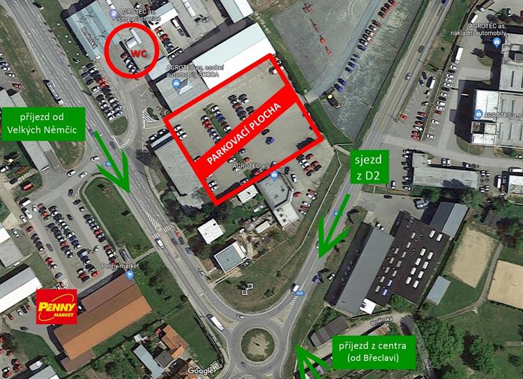 Oproti loňskému roku jsou další parkovací místa před společností Norma group (ze směru od Kurdějova) a místo pro řidiče poskytla také firma Westfalia (naproti Agrotecu).