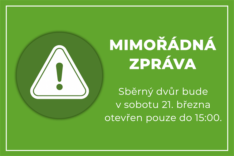 Technické služby Hustopeče oznamují, že z důvodu konání Slavností mandloní a vína bude v sobotu 21. března sběrný dvůr otevřen pouze od 9:30 do 15:00. Děkujeme za pochopení.