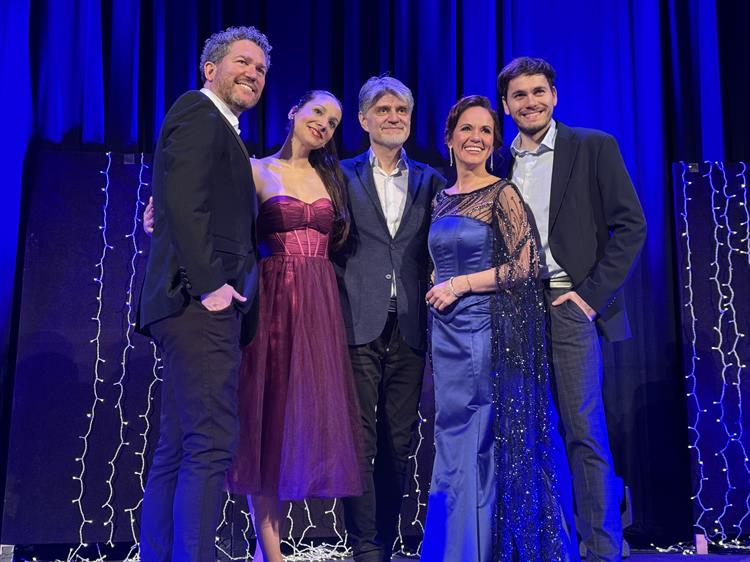 Po skončení koncertu jsme jednoho po druhém vyzpovídali, jak se jim koncert líbil a když je to koncert novoroční, poprosili jsme je i o přání do roku 2026. „Krásný dobrý den, dámy a pánové, my vás tady zdravíme z Kinosálu Hustopeče. Proběhl tady výborný, úžasný a nádherný koncert, byl takový novoroční koncert, spousta muzikálových písní, spousta takových starých, známých, oblíbených písní, takže věřím, že diváci si mohli zanotovat spolu s námi a užívat si krásné skladby. Ještě předtím, než předám slovo, chtěl bych vám popřát krásný rok 2026, bude to rok plný změn a radostí, protože každý rok je plný změn a radostí, a tak si užívejte ve zdraví tohoto roku a ať vás potkávají jenom krásné zážitky a krásné radosti,“ shrnuje Libor Matouš. Na jeho slova navázala Lucie Bergerová, která připomněla pestrost repertoáru a připojila vlastní přání: „Krásný dobrý den i ode mě, no co bych ještě měla dodat, když máte kolegu, který to všechno řekne za vás. Ale ano, zazněly tady písně slavné, známé, pohádkové, české. Udělali jsme takovou lehkou pozvánku i k nám do divadla na chystanou premiéru a ode mě přání do nového roku? Buďte zdraví, buďte šťastní, žijte vděčností a krásný den prožitý na plno.“ „Krásný den, já už jenom dodám, že jsme strašně moc rádi a moc děkujeme za pozvání sem do Hustopeč. Bylo to tady krásné, bylo úžasné publikum a my všichni čtyři jsme si to moc užili, takže moc vám děkujeme a doufáme, že se tady brzo, třeba už v tomto krásném roce 2026 spolu všichni potkáme,“ poděkovala Andrea Zelová.