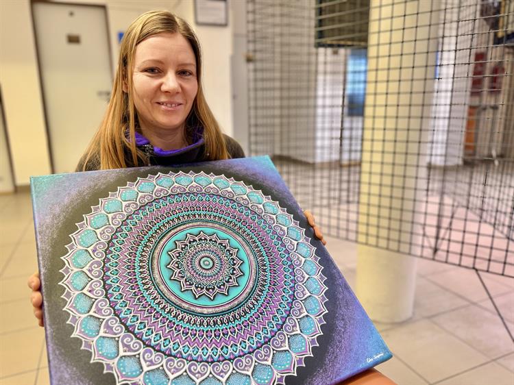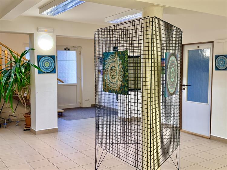 Úterní dny patří v hustopečské knihovně především dětem ze škol a mateřských škol ze širokého okolí. Knihovnice pro ně připravují vzdělávací programy a tematická setkání. Zároveň se ve vestibulu knihovny pravidelně střídají výstavy. Tou únorovou jsou mandaly malířky Ester Jánošové z nedaleké Nosislavy. „Někde jsem na to narazila, jestli na Facebooku, že několik umělců takhle maluje mandaly, a strašně mě to oslovilo,“ popisuje Ester Jánošová svou cestu k této tvorbě. „Je to klasické plátno. Narýsuju si tam takovou pavučinu, kruhy, a potom už si vezmu akrylové barvy. Používám aplikátory a nakonec to dozdobím kamínky.“ Jak sama autorka přiznává, malování mandal vyžaduje velkou míru soustředění a trpělivosti. „Je to náročné udržet tu pozornost. Po dvou hodinách to klidně odložím a vrátím se k tomu zase další den,“ říká.