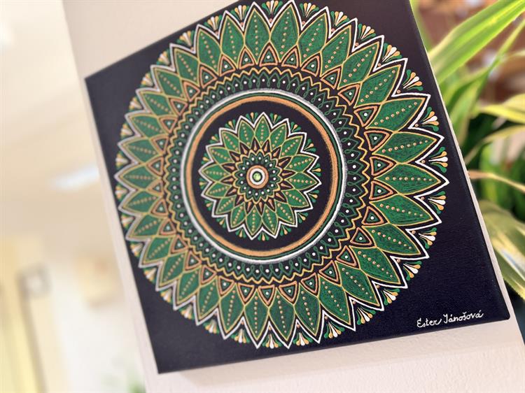 Přestože jsou mandaly hlavním tématem výstavy, návštěvníci zde najdou i klasické malby na plátně. K malování se Ester Jánošová dostala díky kurzu u malířky Jany Rozkové, jejíž žáci už v knihovně vystavovali opakovaně. „Ona je profesionální malířka. Navede vás, jak na to, poradí, kde přidat víc barvy, kde ji udělat sytější,“ popisuje Ester Jánošová. „Chodila jsem tam ráda. Teď už jsem tam asi rok nebyla, ale chtěla bych se zase od září, přes zimu, vrátit.“