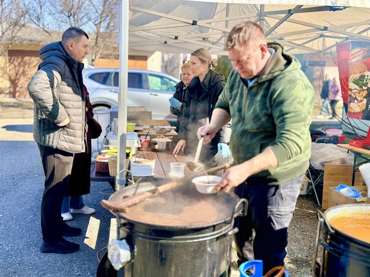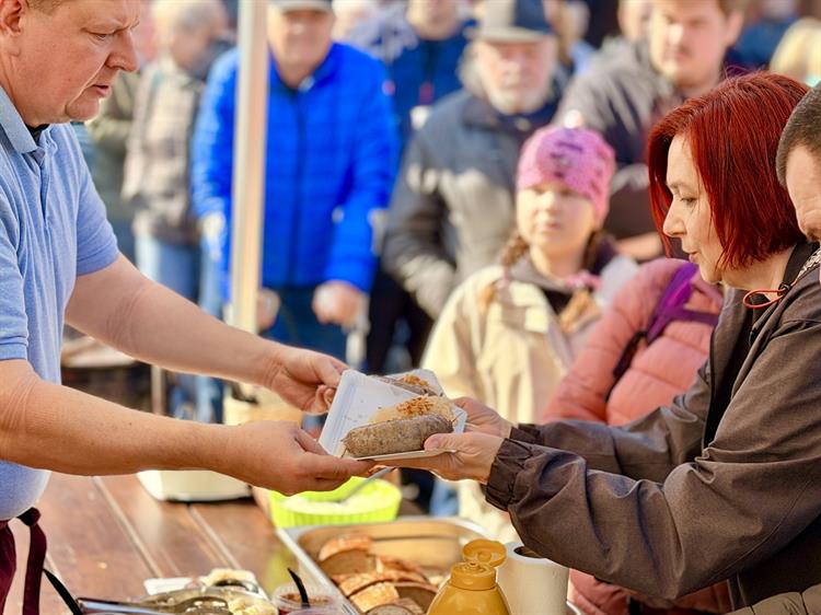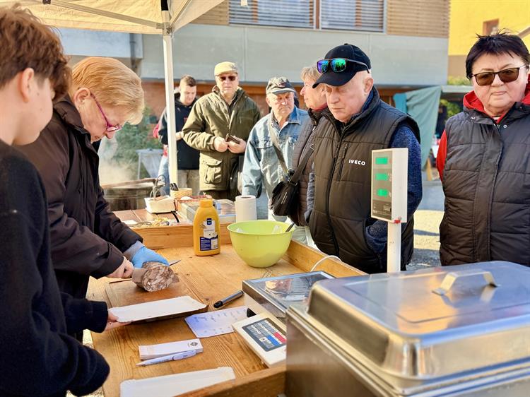 Už od poledne se u stánků tvořily dlouhé fronty. Někteří návštěvníci využili připravené posezení a užívali si slunečné počasí s talířem zabíjačkových specialit, jiní si pochoutky odnášeli domů. Na místě se vařil zabíjačkový guláš i polévka, nechyběl ovar, jelita na grilu, jitrnice ani tlačenka. „Neděláme úplně tradiční zabíjačku, že bychom tady zabili prase a celé ho rozporcovali. Maso a další suroviny jsme přivezli a tady je zpracováváme – vaříme guláš, polévku, připravujeme ovar nebo grilujeme jelita. Je to spíš o společném setkání a ochutnávce,“ popsal Michal Stehlík.