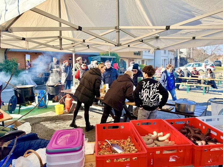 V Hustopečích se většina vinařských akcí tradičně odehrává v ulici Na Hradbách. Parta přátel z Vinařské ulice se proto rozhodla přinést společenský život i do svého sousedství. Po loňském úspěšném gulášfestu připravili letos zabíjačku, která přilákala řadu návštěvníků a ukázala, že i menší, komorní akce mají své kouzlo. „Je to tradiční věc u nás a myslím, že trošku mizí z našich konců, chtěli jsme proto vrátit zabíjačku zpátky do života naší ulice a potěšit i ostatní Hustopečáky. Ostatky jsou skvělá akce, kterou pořádá město, ale tohle je taková komornější událost hlavně pro místní,“ vysvětlil organizátor Michal Stehlík. Dodal, že za akcí stojí především dva kamarádi z Vinařské ulice, on a Miloš Bednář, který se tentokrát kvůli nemoci nemohl zúčastnit. „Mrzí mě to, ale díky kamarádům a rodině jsme to společně zvládli,“ doplnil.