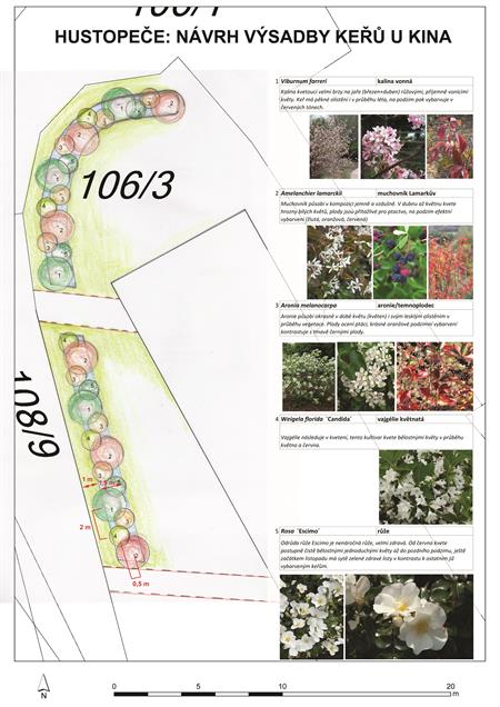v prostorách před kinokavárnou vysadí pás keřů podle návrhu zahradní